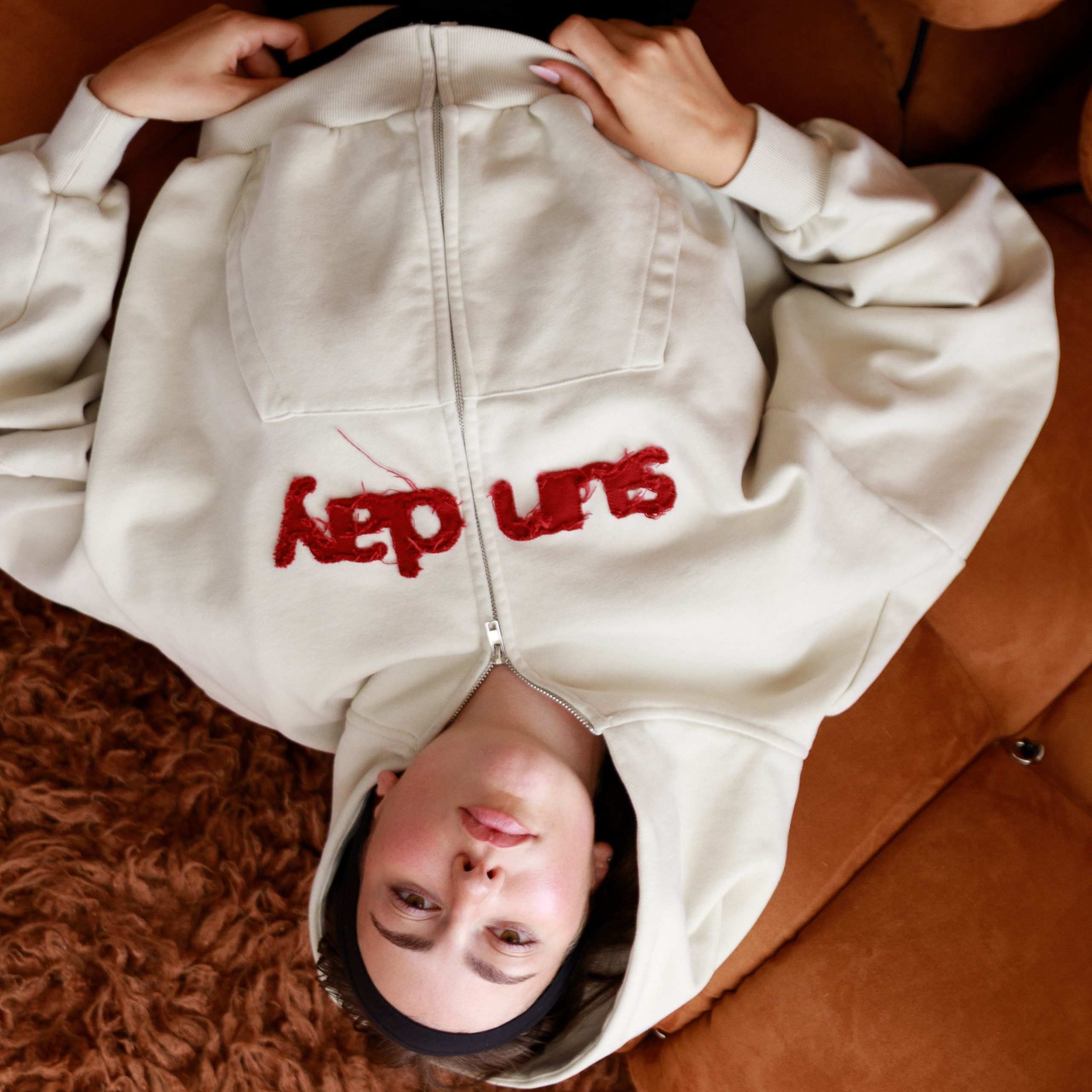 Enhance your daily wardrobe with the Heavyweight Appliqué Sunday Zip Up hoodie in off-white, designed for superior comfort and a fashionable streetwear appeal. Constructed from exceptionally dense 485 GSM brushed fleece, it ensures warmth, structure, and comfort. The fabric, a blend of 75% cotton and 25% polyester, combines the advantages of both materials. Its relaxed, oversized fit with balloon sleeves provides a contemporary and confident appearance. The Sunday hoodie also features a ribbed hem and cuffs, complemented by stylish screen-printed artwork—ideal for effortless layering or standalone wear.