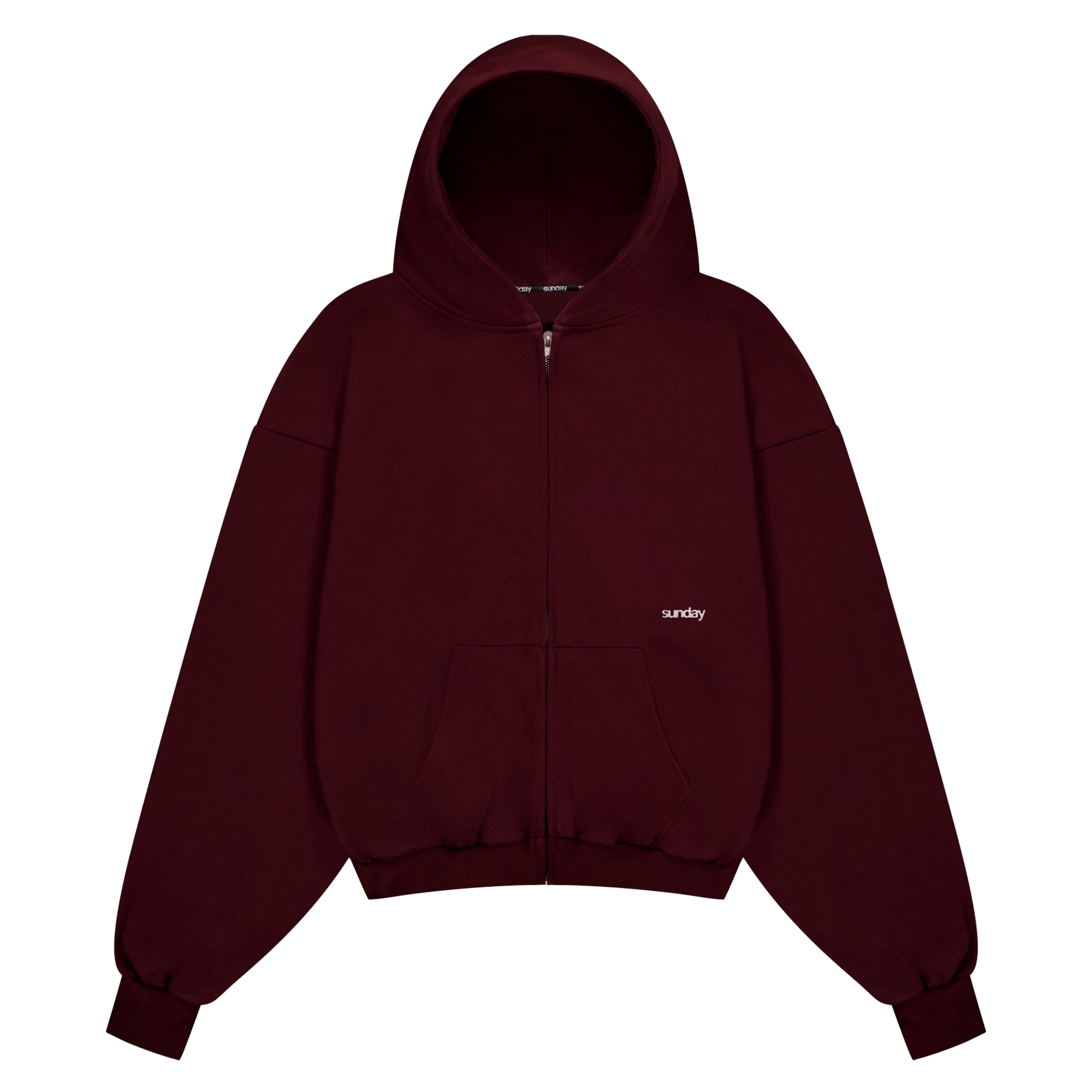 Heavyweight Script Sunday Zip Up Hoodie – Wine